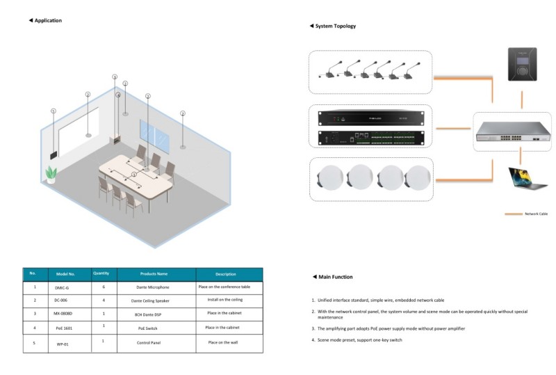 o การรวมแหล่งจ่ายไฟ POE: ร่วมมือกับสวิตช์ POE เพื่อรับรู้แหล่งจ่ายไฟแบบเคเบิลเดียว + การส่งข้อมูลของไมโครโฟน/ลำโพง Dante (เช่น Shure MXA Series)